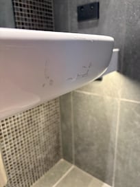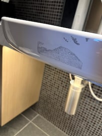 The fridge was empty, with only a small bottle of milk, which felt a bit underwhelming. I also noticed the shower drainage was already showing rust, and the sink had sticker residue left on it. The door to the room also couldn’t fully open and kept scraping the floor, which was inconvenient. For a brand-new building, it felt like the construction and finishing were rushed, which was disappointing given the expectations.